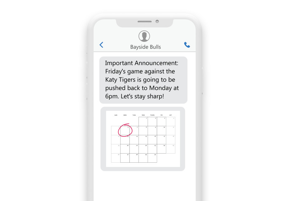 It's never too late to reach out. Send an updated game or practice schedule with the flexible text messaging platform and make sure you stay in contact!