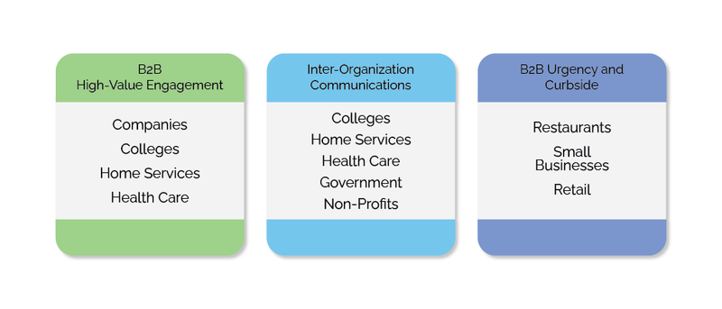 - B2B - Businesses buy what they need. What they need is something that contributes directly to their bottom line like earning more money by getting them more leads/sales through texting, or saving money by reducing the amount of time it takes to close deals.